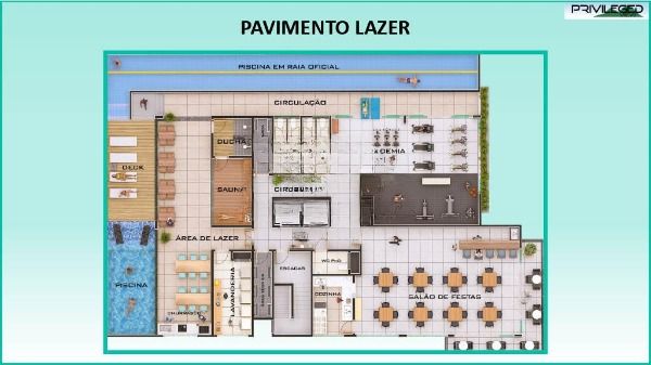 Esse condomínio irá contar, com uma ótima infraestrutura de área de lazer com piscina com deck seco, varanda gourmet com churrasqueira, sauna, duchas, vestiário masculino e feminino, lavanderia social, vagas de garagem com tomadas para carregar carros, motos e bikes elétricas, raia semi-olímpica, salão de festas e academia com vista para o mar.