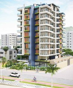 Apartamento Tipo 03 com 120m² de área privativa e belíssima vista panorâmica para a praia e à Serra do Mar, com varanda gourmet.