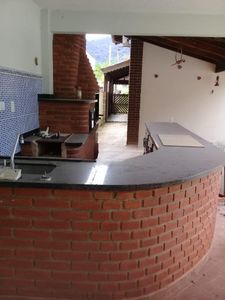 - Espaço gourmet completo com churrasqueira, forno e fogão a lenha