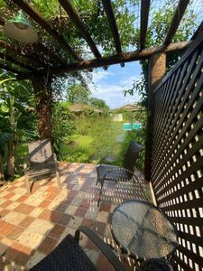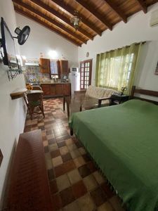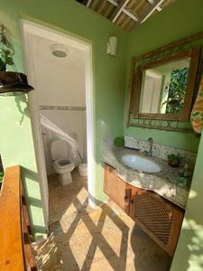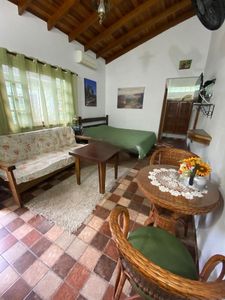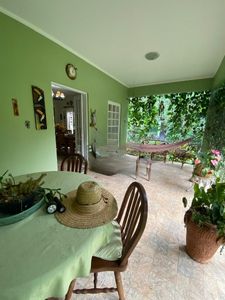 - Casa Principal: Com 2 suítes, incluindo 1 demi suíte, todos com ar condicionado, sala ampla de dois ambientes (estar e jantar), cozinha bem equipada, lavanderia coberta, varanda aconchegante e banheiro com jardim de inverno e esquentador de toalha.