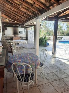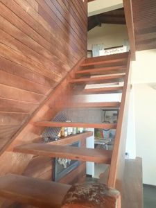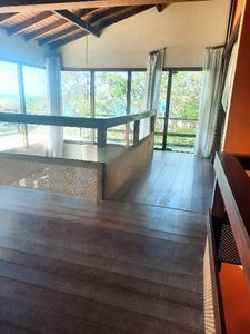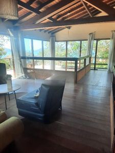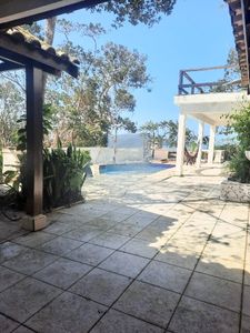 - Piso inferior: 1 quarto, 1 banheiro, sala com vista para o mar, cozinha, área de serviço, piscina e churrasqueira
