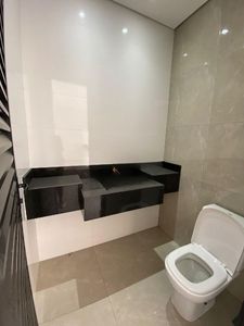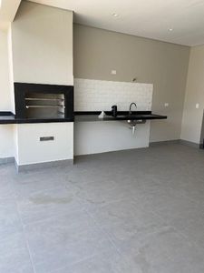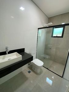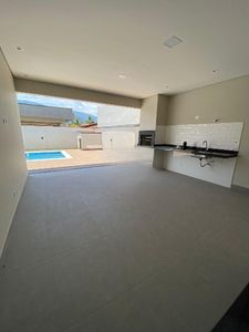 A casa dispõe de 3 suítes, além de um quarto adicional que pode ser utilizado como escritório. Conta também com um banheiro social, uma ampla sala integrada à cozinha americana, espaço gourmet com churrasqueira, lavanderia, lavabo e uma deslumbrante piscina com cascata, ideal para momentos de lazer.